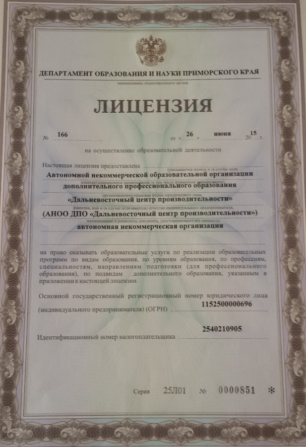 АНОО ДПО Дальневосточный центр производительности